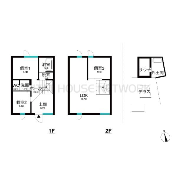 | 所在階 | 地上2階建ての1階から2階 | 構造 | 木造(在来) |