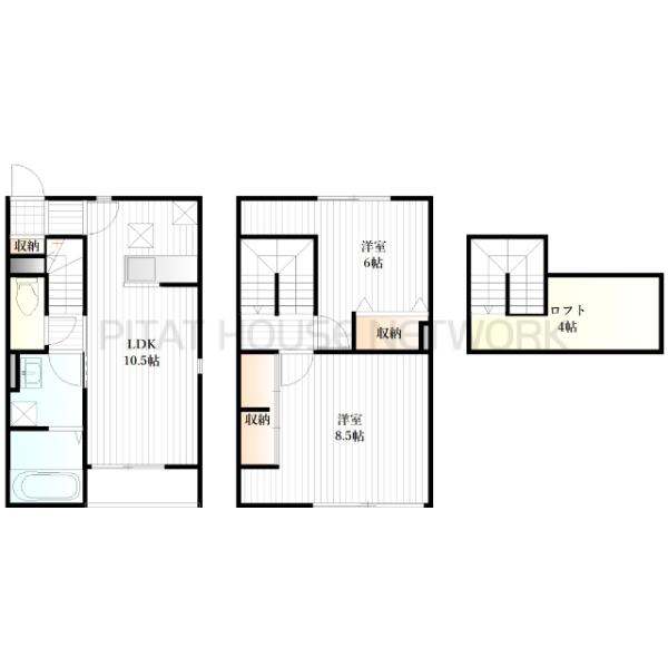 | 間取り詳細 | LDK10.5帖 洋6帖 洋8.5帖 ロフト4帖 |