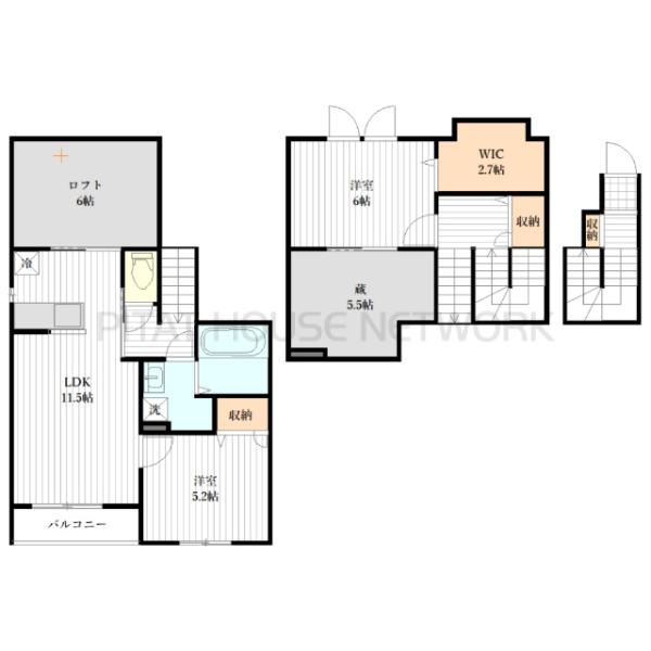 | 間取り詳細 | LDK11.5帖 洋6帖 洋5.2帖 5.5帖 ロフト6帖 |